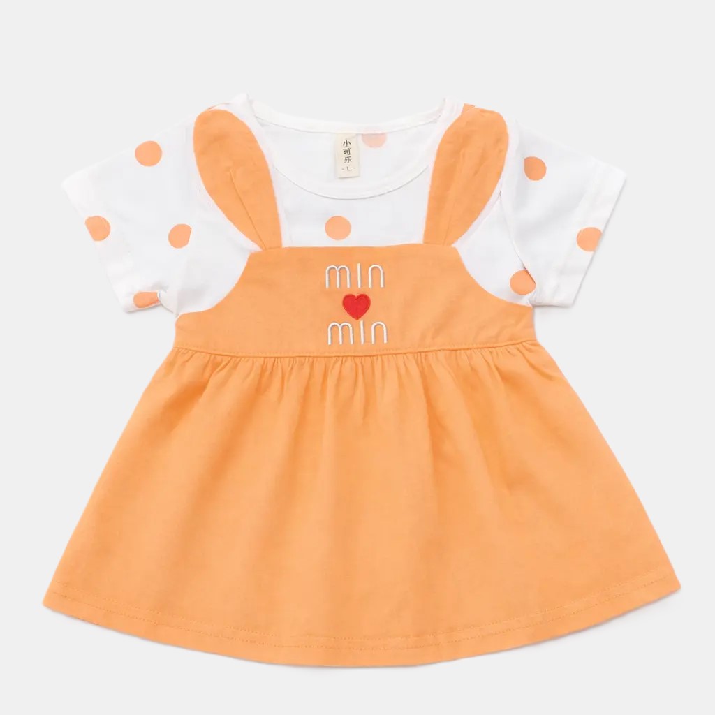 Polka Dot Top and Denim Pinafore Dress Set – 1 TO 6Y