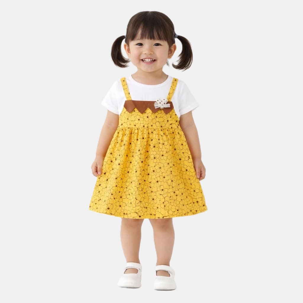 Girls Mustard Floral Pinafore Frock for Summer – 1 TO 5Y