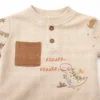 This charming three-piece Dinosaur Print Waffle Knit Se features a playful prehistoric theme that little ones will love. The cream-colored waffle knit fabric is adorned with delicate dinosaur illustrations on the sleeves and matching beanie while the chest features a friendly dinosaur graphic and a textured contrasting pocket for a touch of character.