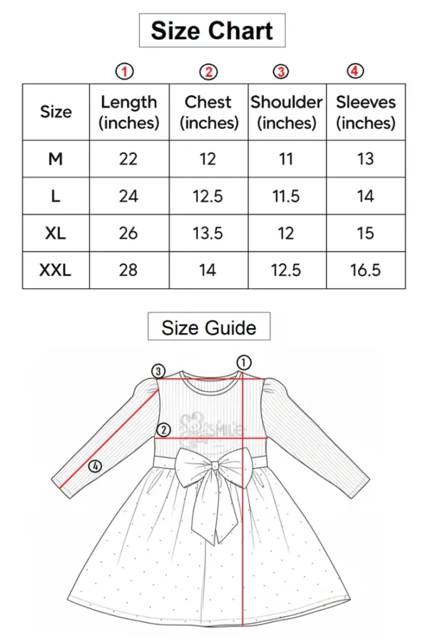Our adorable frock comes in 4 different sizes to suit growing girls perfectly. Whether you’re shopping for toddlers or little fashionistas, you’ll find the ideal fit. 💕 For the best choice, please check our size chart and size guide (found at the bottom) before ordering to ensure comfort and style in every wear.