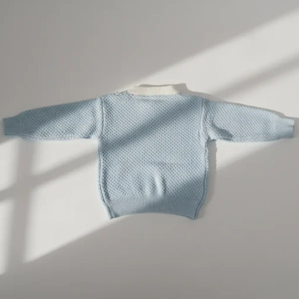 This charming Imported Knitted Winter Suit includes a cozy sky-blue sweater and matching ribbed pants. Perfect for keeping your little one warm, comfortable, and stylish throughout the chilly season.