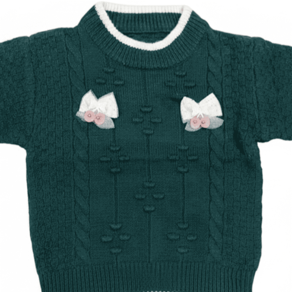 The dark green sweater features two delicate bow embellishments that add a touch of sweetness and style. Perfect for casual wear, outings, and photo sessions.