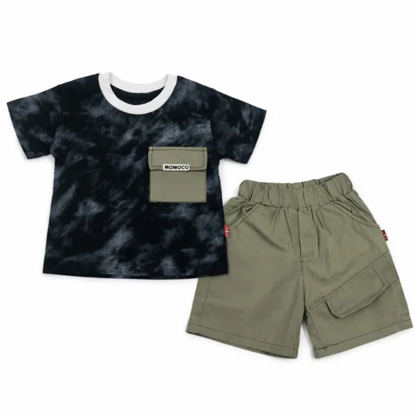 This stylish MOMOCO Tie-Dye T-Shirt & Cargo Shorts features a modern black and charcoal tie-dye pattern that gives the classic t-shirt a contemporary edge. The unique wash ensures a standout look for active boys who want to balance comfort with a cool, urban aesthetic.