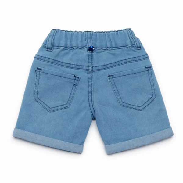 The denim shorts come with functional side pockets, allowing kids to carry small essentials comfortably. The elastic waistband ensures a flexible and secure fit for everyday wear.