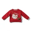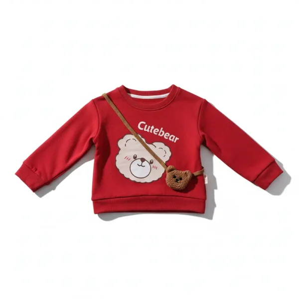 This charming Unisex Sweatshirt & Denim Pants Outfit includes a soft red sweatshirt with a cute bear print and a pair of comfy denim pants. Perfect for everyday wear, playtime, or outings.